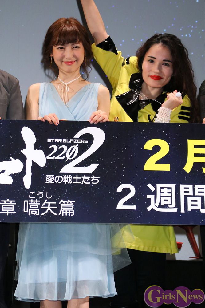 SFアニメの金字塔『宇宙戦艦ヤマト』をリメイクし、2013年に大ヒットした『宇宙戦艦ヤマト1999』の続編『宇宙戦艦ヤマト2202 愛の戦士たち』の完成披露上映会が6日、東京・有楽町よみうりホールで開催され、鈴村健一(島大介役)、神田沙也加(テレサ役)、羽原信義監督、福井晴敏(シリーズ構成)が登壇した。