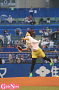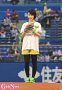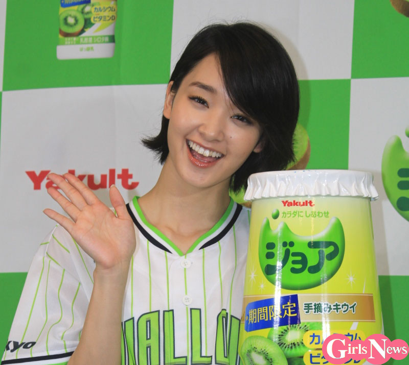 “ジョア キウイナイター”と銘打って行われたこの日の試合。ジョアのCMに出演中の剛力さんが大役を任された。