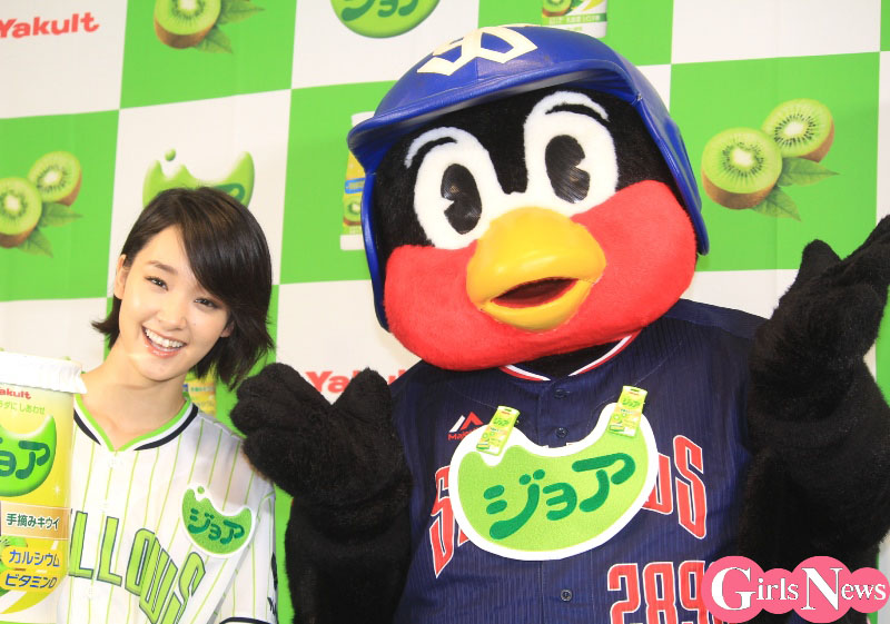 始球式のあと、ヤクルトのマスコットキャラクターの「つば九郎」とともに記者会見に臨んだ剛力さん。始球式の感想を求められると、「悔しいですけど、昨年が大暴投したので、それに比べたら今年は一応届いたので、ちょっとそれちゃったけど…」と今一つ満足いかなかったという表情。自己採点を求められると「40点くらい」とのこと。だが、つば九郎から「(これまでの始球式の中で)1ばんよかった。」と告げられると、ニッコリ笑顔になった。