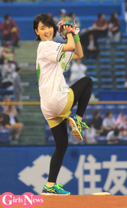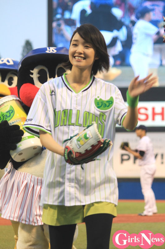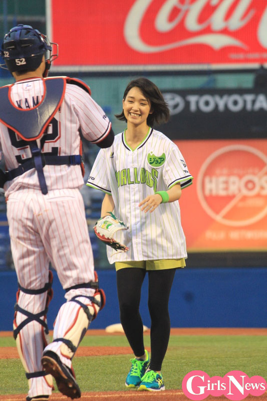女優の剛力彩芽さんが13日、東京・神宮球場で行われたプロ野球 セ・パ交流戦 東京ヤクルトスワローズ vs 東北楽天ゴールデンイーグルス戦の試合前の始球式に登場した。
