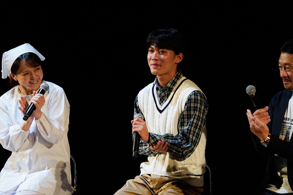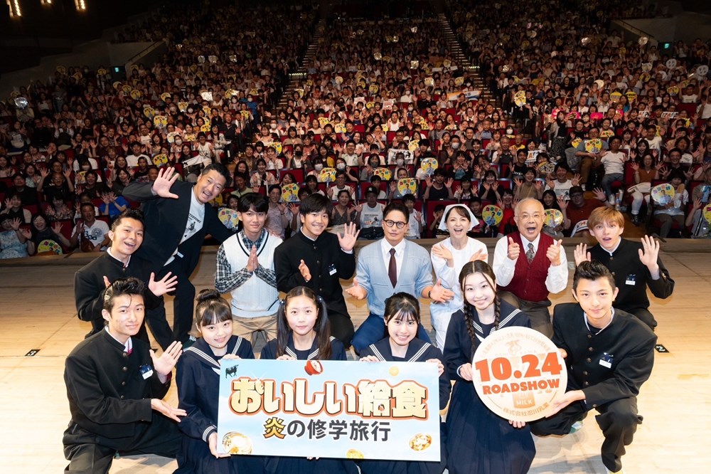 人気シリーズ『おいしい給食』初のファンイベント『「おいしい給食」ファンミーティング「全校集会」』が21日、品川区・きゅりあん大ホールで開かれ、主演の市原隼人さんをはじめ、生徒役を演じた高松咲希さん、富田莉代さん、東菊乃さん、石川令菜さんらが登場した。