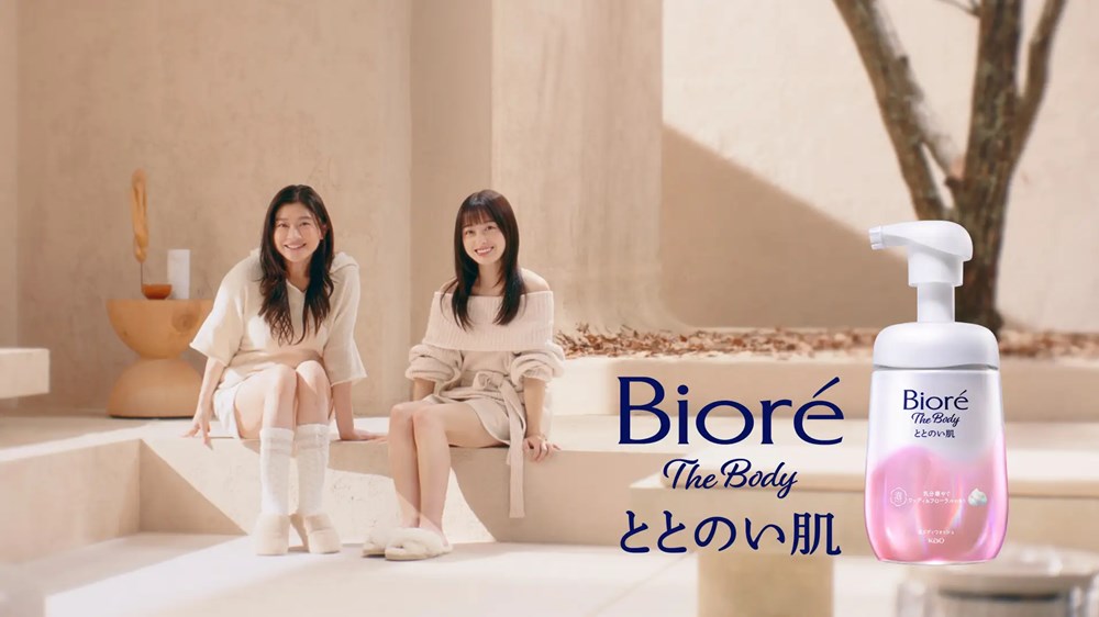 花王のスキンケアブランド「ビオレ」は、新商品『ビオレ ザ ボディ ととのい肌』の新テレビCMとして「水ツヤのヴェール」篇を制作した。このCMでは、橋本環奈さんと篠原涼子さんが同商品を使用することで、肌のカサつきを防ぎながらベタつきを抑える「水ツヤのヴェール」を体験する。CMは、肌のカサつきやベタつきが気にならなくなったことに驚く篠原さんに対し、橋本さんが「『ビオレ ととのい肌』で洗ってますから!」と得意げに商品を差し出す場面から始まる。