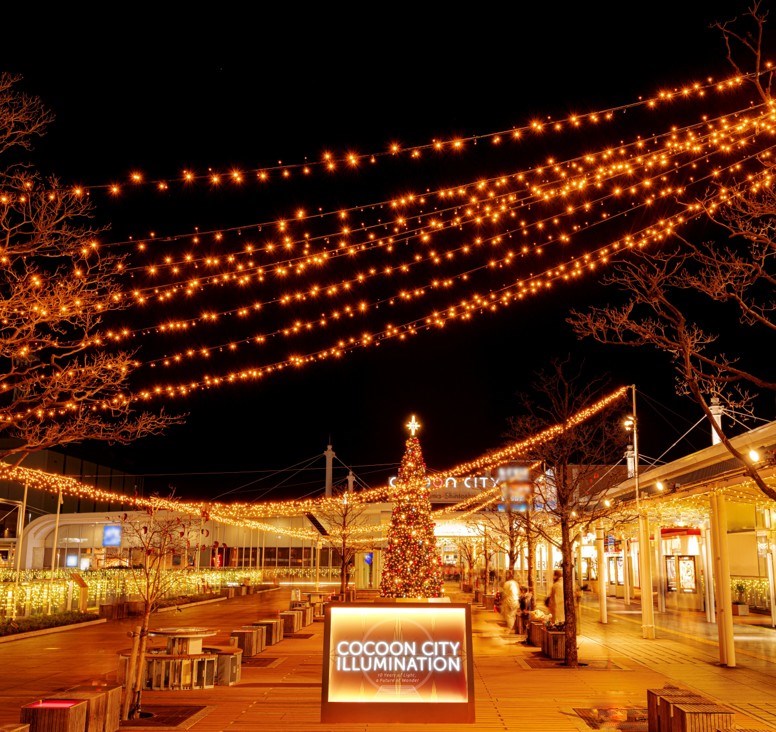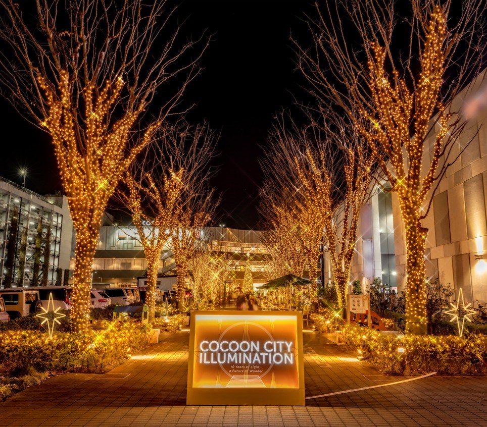 「コクーンシティイルミネーション2025」は2025年11月1日から2026年2月15日まで点灯され、45万球ものシャンパンゴールドの光が街を彩り、輝きに満ちた空間で訪れる人々を優しく包み込む。10周年イヤーを記念した今年のテーマは「10 Years of Light, a Future of Wonder 光で紡いだ10年。これからも、驚きと出会う未来へ。」。メイン会場のコクーンひろばには高さ10メートル超のクリスマスツリーが設置され、「光と音のショー」が毎日楽しめる。