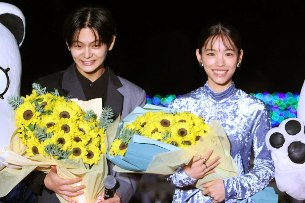 続けて齋藤さんは「いろんな愛が描かれているので、見る方によって感じ方や共感する部分もそれぞれ違うと思います。そうした多様な“愛”を、全世代の方に楽しんでいただける作品だと思います」と作品の多様な魅力をアピールした。この日、映画の大ヒットを記念し、よみうりランドから二人にはサプライズで100本のひまわりの花束が贈られた。