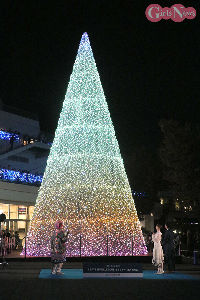 今年のイルミネーションは「湘南の青い海、蒼い空 7DAYS SPARKLE BLUE」がテーマ。テラスモール湘南の愛澤秀之社長所長は、「湘南の空をイメージしたLED約25万球、高さ15メートルの巨大なツリーです。7日間毎日色が変化していきますので、ぜひ毎日お越しいただいて、違う色のツリーを楽しんでいただければ」と説明した。期間は本日より来年2月15日まで毎日楽しめる。