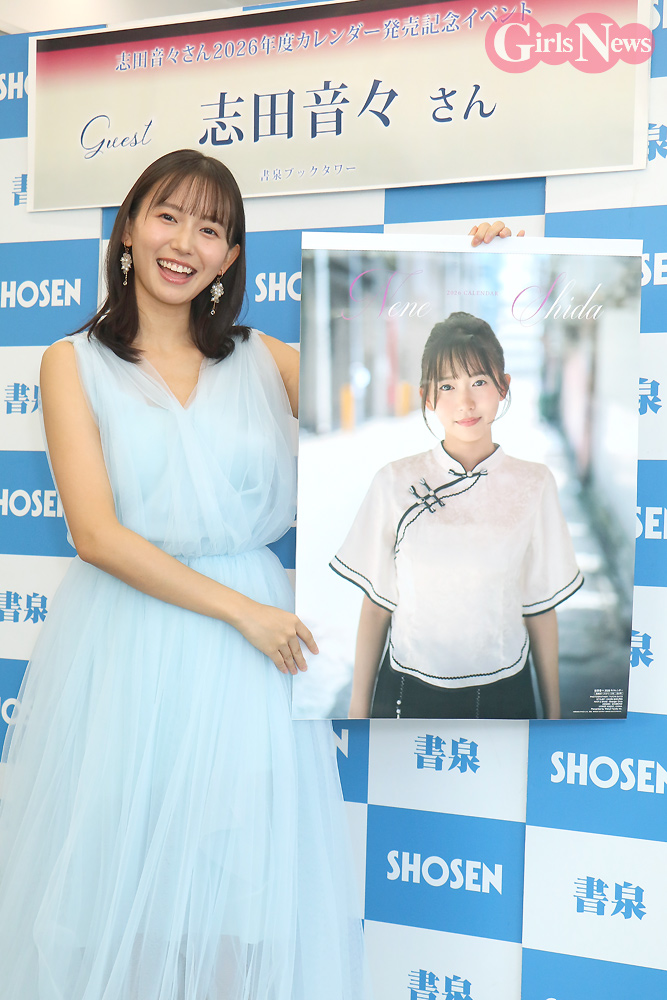 特撮テレビドラマ『仮面ライダーギーツ』桜井沙羅役や、舞台『かげきしょうじょ!!』渡辺さらさ役などで知られる女優の志田音々が15日、自身の『2026年カレンダー』(わくわく製作所)発売を記念したイベントを秋葉原・書泉ブックタワーで開催した。