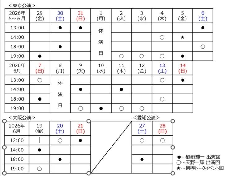 アイドルに憧れる妹・瑠花を石田亜佑美さん、姉・紅莉を村山彩希さんが演じる。さらに、姉妹の父・桔平役を梅澤裕介さん、母・椿役を多和田任益さんが務め、オーディションの発起人・BREED役で滝澤諒さんが出演する。多和田さんが梅棒公演で女性役を演じるのは今回が初めて。東京公演はシアターHにて5月29日から6月14日まで上演され、その後、大阪、愛知を巡る。