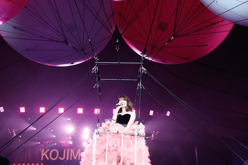 ラストの『ハート型ウイルス』では、こじはるは気球に乗ってステージから飛び立ち、会場内を移動。どんどん正面ステージから離れてしまい、「なんでそんなに遠くに?」と不思議がるメンバーに対し、「時間がないの。今からミラノに行ってくる」と、こじはるからまさかの答えが。