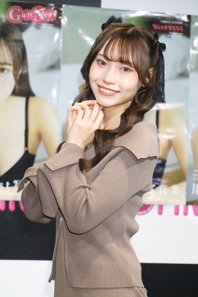 写真集への自己評価は「500億点」と満面の笑みで答えた。友人からはお祝いのメッセージがたくさん届き、家族も写真集をゲットしてくれたそうだ。特に「兄が『写真集届いたよ』ってLINEをくれて、写真集を部屋にきれいに飾って、並べた状態で写真を送ってくれたのが嬉しかった」とエピソードを語った。