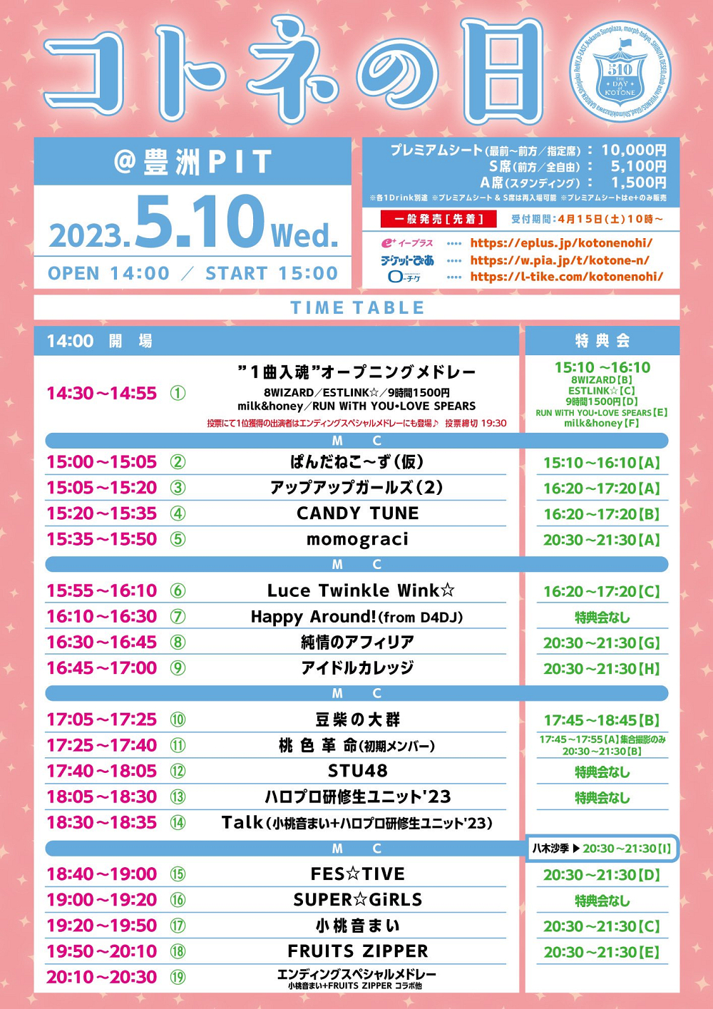 今回の「コトネの日」にも、たくさんのアイドルさんに来ていただきました。ハロプロ研修生ユニット’23さんも参加されて、過去最強ラインナップとなりました。今回はコラボもさせていただく予定なのと、生バンドライブなのでそれも楽しみにしていただけたら嬉しいです。