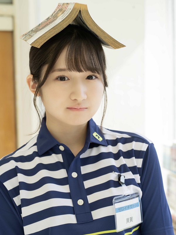 貝賀さんは「実際にコンビニでアルバイトしていたので、レジに立った感じとか、雑誌を陳列したりとか、とっても懐かしく思いました! 撮影で、買い物カゴに入ろうとなったときは思わず『え!?』と声に出してしまいました(笑)。カゴに入るなんて小さい頃でもしたことないよとちょっと羞恥心を抱きながら撮影した記憶があります(笑)」と撮影を振り返った。