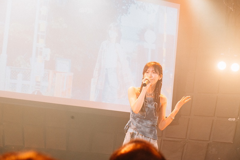 現在放送中のテレビアニメ『ブサメンガチファイター』エンディングテーマ「絆創膏」を披露すると、優しさを包み込むような歌声を響かせ、続く「ステンバイミー」では軽快なリズムに合わせて自然と客席から手拍子が生まれ、MV映像とともに楽曲の世界観を鮮やかに描き出し会場全体が再び軽やかな空気に包まれ、その余韻を残したまま、静かな拍手に送られ本編は幕を閉じた。