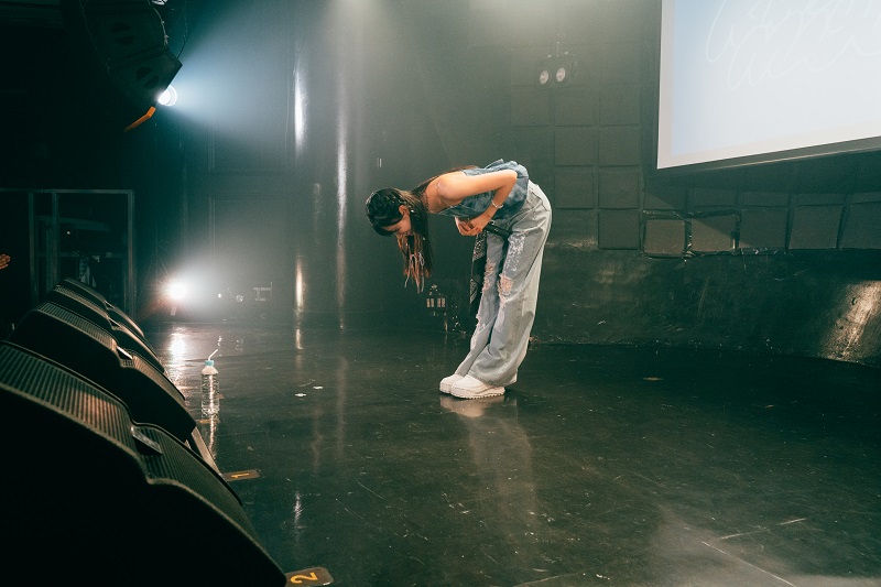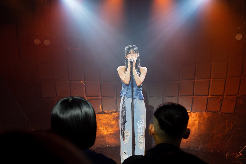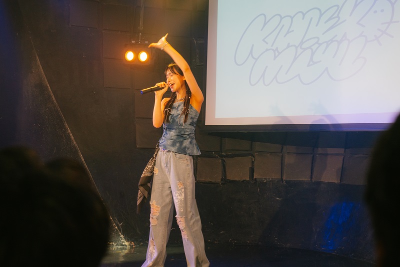 オープニングでは柔らかな照明とSEが会場を包み込み、ステージ中央にデニムスタイル(Y2Kファッション)に身を包んだ金子みゆが登場。会場に集まったファンへの第一声は「みなさんこんにちは〜!!」という明るい一言とともに、メジャーデビュー初となる1曲「アタシのハートに降参ね」でスタート。明るくポップなメロディーに合わせて自然体の笑顔を見せ、アイドル時代とは一味違う、力強くも繊細な歌声で観客を一気に引き込んだ。続く「おSHUSHI」では「サビで手を振ってね〜」と呼びかけ、会場は柔らかな一体感を演出。