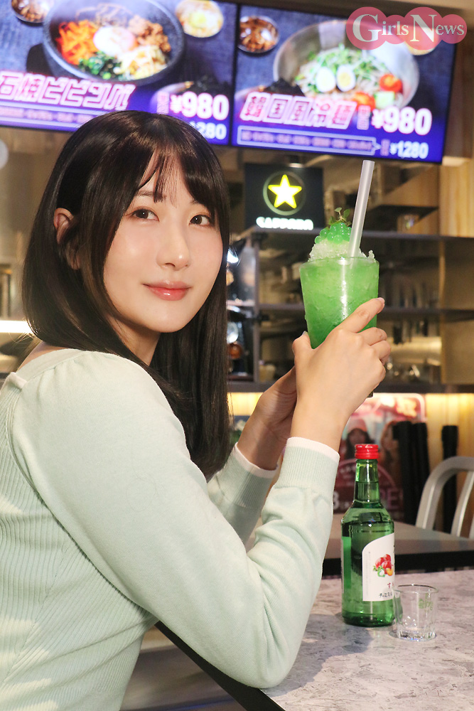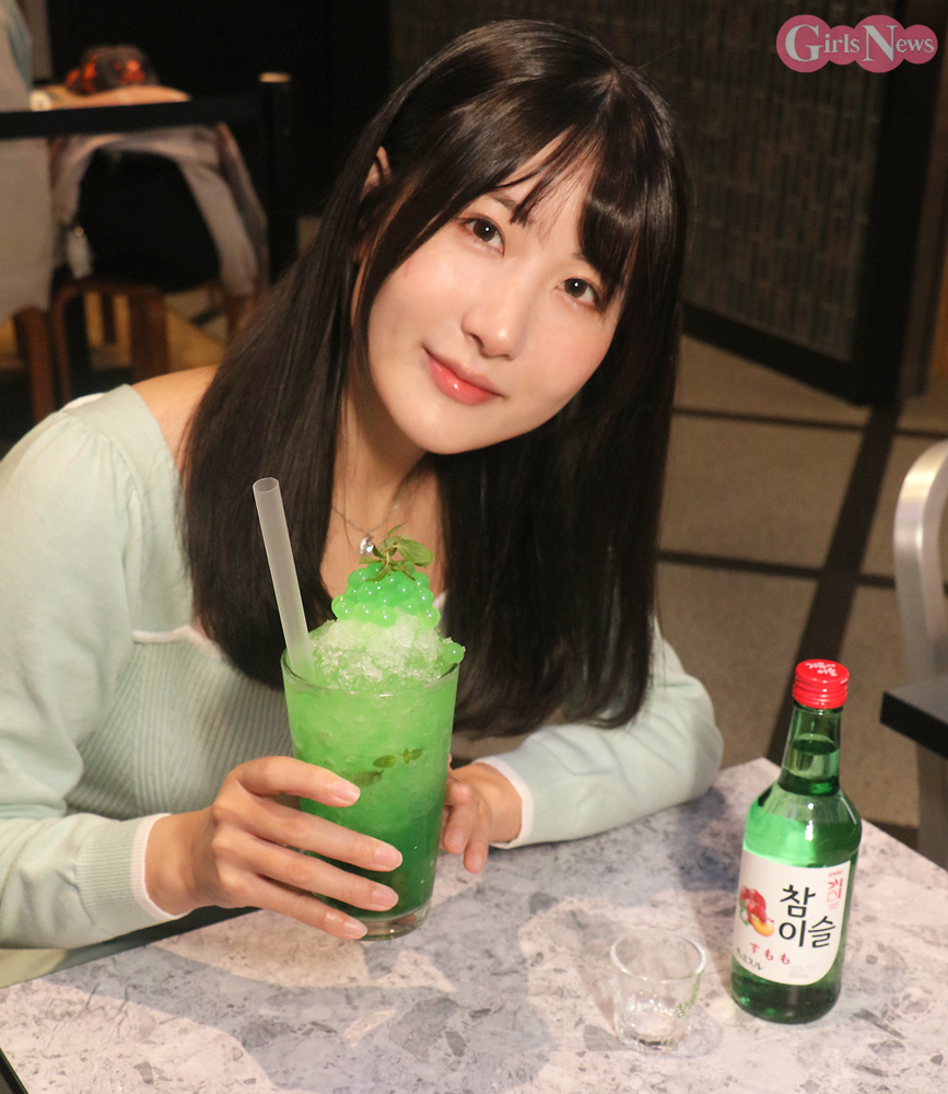 ドリンクメニューに関しては、「飲み物の種類が豊富で嬉しい」とコメントした。韓国のお酒が充実していることにも触れ、特にマッコリの種類が多く、日本で珍しい生マッコリや、若い世代に人気のチャミスル(チョミシュル)が豊富に揃えられていることに喜んだ。また、韓国のビールが置かれていることにも言及し、「韓国に来たみたい」と旅行気分を味わっていた。
