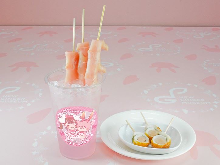 『CAFE NEW GINGER』では、もえあずとのコラボメニューが期間限定で楽しめる。もえあずの動画にも登場する「麻辣湯」のほか、ピンク色がかわいい「アップルパイサンデー」が登場。さらに、岩下の新生姜プレミアム3本をマドラーにしたアルコールの「岩下の新生姜サワー」とノンアルコールの「岩下の新生姜モクテル」も提供されている。「麻辣湯」にはピンクのとろろと岩下の新生姜シウマイが、「アップルパイサンデー」には岩下の新生姜がトッピングされているという。