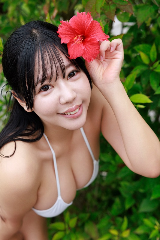 クリーミーな泡まみれの姿が表紙に、中面カットでは沖縄らしいハイビスカスの花びらを持ち愛嬌たっぷりな表情も見せる。また黄色のビキニのままヒップも覗かせる姿や、黒いランジェリーのままベッドに横たわる姿などセクシーカットも