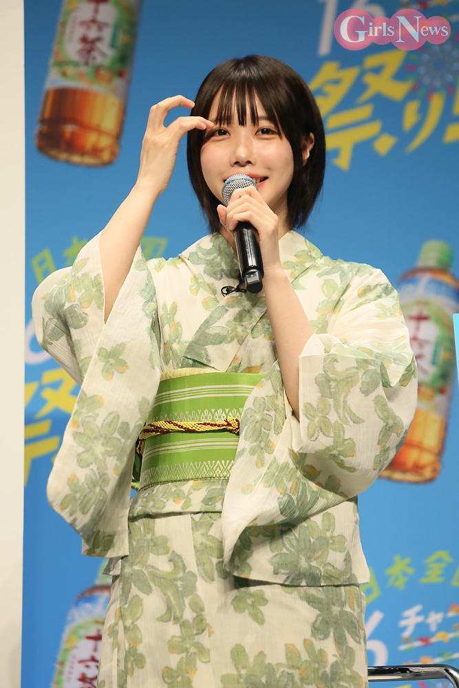 行ってみたいお祭りを尋ねられると「花火大会!花火が大好きで、ちっちゃい頃は、毎年夏になると、1日1本ずつやってました」と、ユニークな花火の楽しみ方を披露。「打ち上げ花火も大好きなので、今年こそ花火大会に行きたいです」と、夏への期待を膨らませた。屋台で食べてみたいものを尋ねられると「大きなイカ焼き。絶対食べづらそうですけど、豪快に食べてみたい」と回答した。