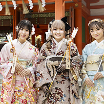 HKT48 石橋颯、大庭凜咲、山川万里愛が福岡・住吉神社にて「はたちのつどい」