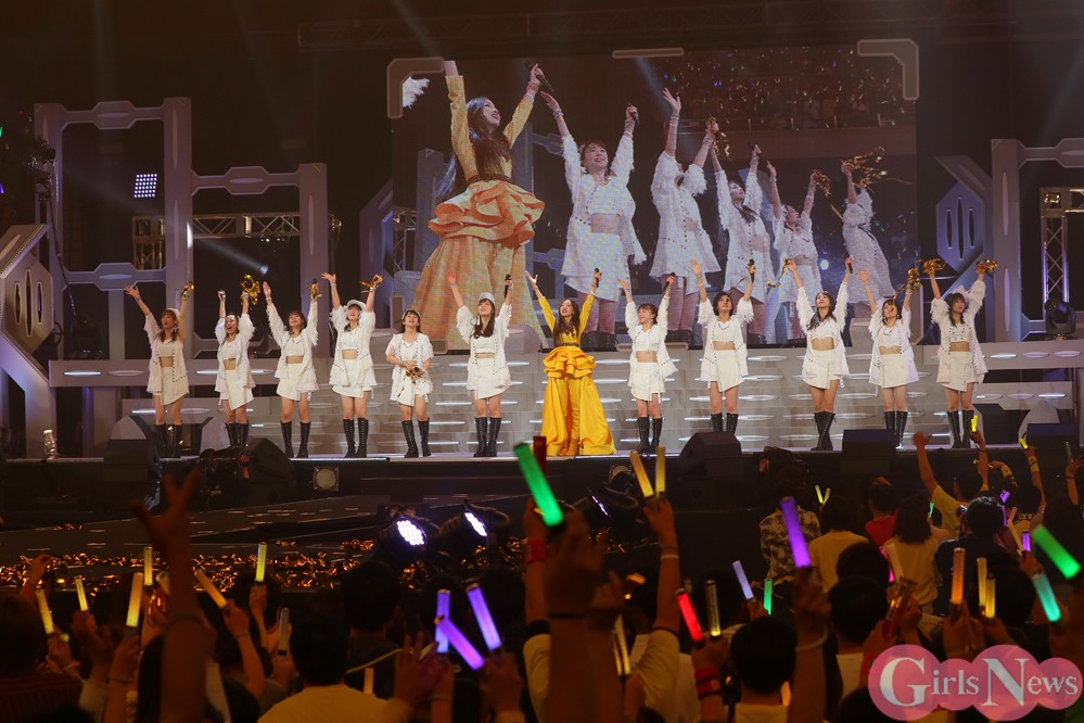 また、ライブに途中には、ハロー!プロジェクトを代表して、アンジュルムの和田彩花さんが花束を持って駆けつけた。仲のよいと和田さんの姿に、飯窪さんも緊張が解けた笑顔を見せ、二人で熱く抱き合った。