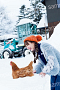 3 枚目は満面の笑みで雪の中、鶏と戯れる姿を切り取った。“常に全力”が魅力の彼女は手元や袖が雪にまみれてしまうのもお構いなし。最高の笑顔を見せた。