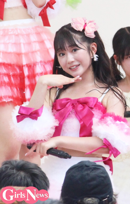 13:25からという酷暑の中の野外ステージ。それでもメンバーたちは元気に熱いステージを繰り広げた。ライブは『MAX!乙女心』からスタート、そして2曲目『ラブサマ!!!』のイントロが流れると場内からは大きな歓声が。ここから“夏スパガ”モード全開のステージを繰り広げた。