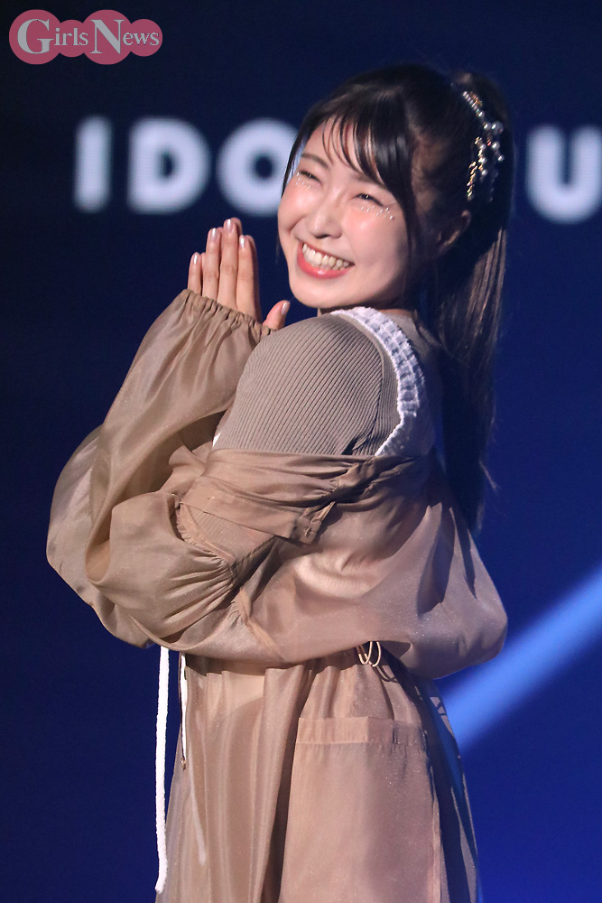 田中美久さんは、放送中のドラマ『最高の教師 1年後、私は生徒に■された』(日本テレビ)に渡会華(わたらい はな)役で出演中。客席のファンから「はなちゃーん!」と呼ばれると、「ありがとね」と笑顔で答えていた。