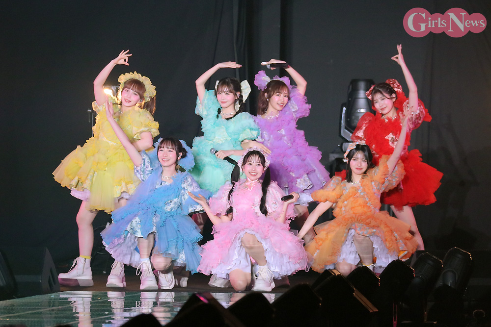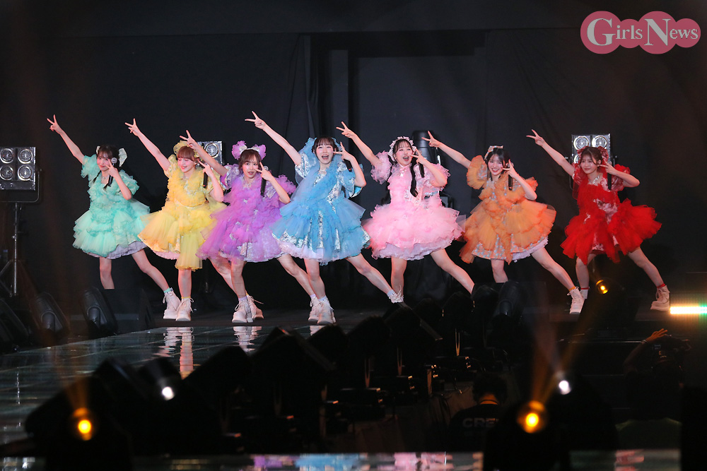 アーティストライブステージでは、『ぴゅあいんざわーるど』『NEW KAWAII』『わたしの一番かわいいところ』の3曲を7人で披露。メンバーの櫻井優衣・真中まな・仲川瑠夏・早瀬ノエル・月足天音・鎮西寿々歌・松本かれんは、それぞれモデルとしてランウェイにも登場した。