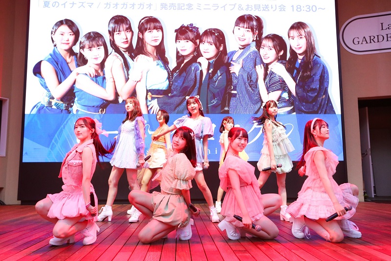発売記念イベントは、メンバーによるパフォーマンスでスタート。2ndシングルのタイトル曲で、夏の情景を連想させるフレーズを豊富に盛り込んだロック調の『夏のイナズマ』で力強く9人が躍動した。