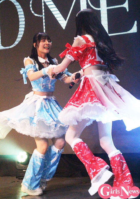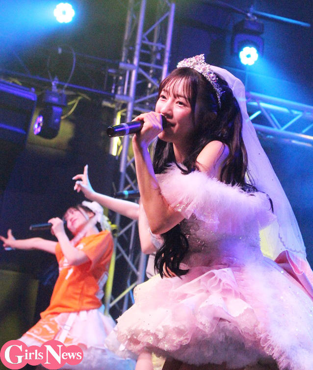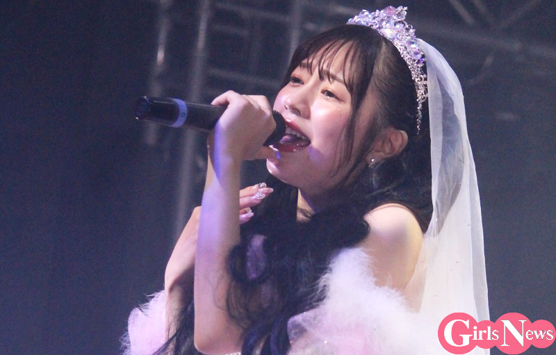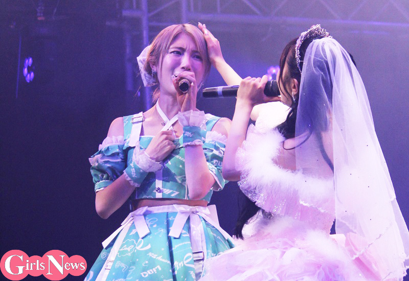 歌い終えた髙木さんのとなりには海月らなさんが。髙木さんは「らなは(卒業発表後の)この10ヶ月間、ほぼ毎日泣いていました。その涙を忘れません、ありがとうね」と語りかけると、海月さんの目からはぽろぽろと涙がこぼれる。そして全メンバーが再登場し、『キミがいたから』を歌唱。エモーショナルなムードの中、メンバーの歌声が次第に涙交じりになってくる。ステージ中央で全員が円になって肩を組み合い、『Shining Star』へ。タオルを回しながらの歌唱に、場内は大きな盛り上がりとなった。