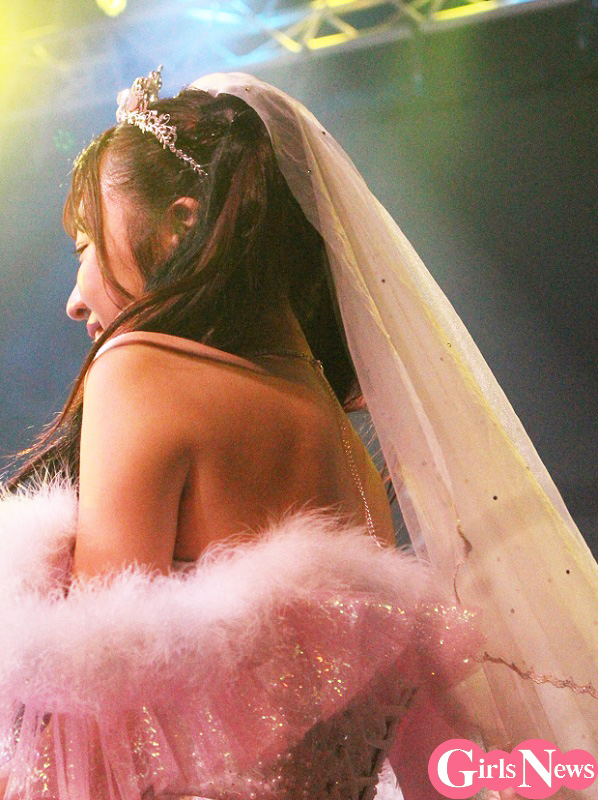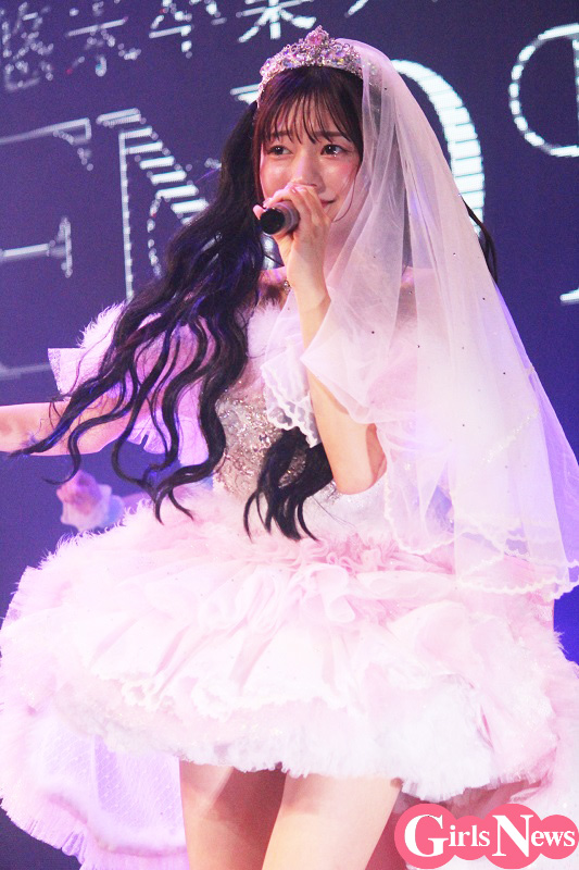 前半が終わり、スクリーンに髙木さんのLinQへの思いやOG、後輩たちからのメッセージが集められた映像が流れ、しんみりとした空気になる中、卒業ドレスに着替えて一人でステージに登場した髙木さん、最新アルバムに収録のソロ曲『タカラモノ』を思いを込めて披露した。歌いながら、声がつまりそうになる場面も。この楽曲に込められた髙木さんの感謝の気持ちがいっぱいに表れた歌唱となった。