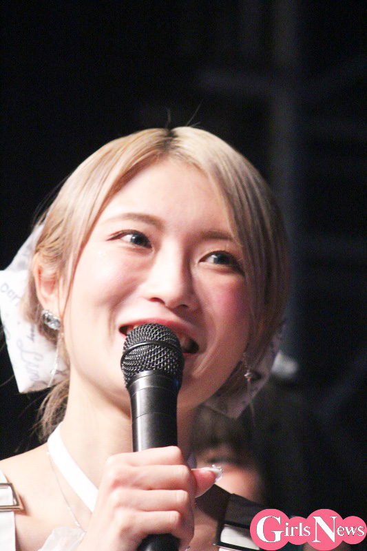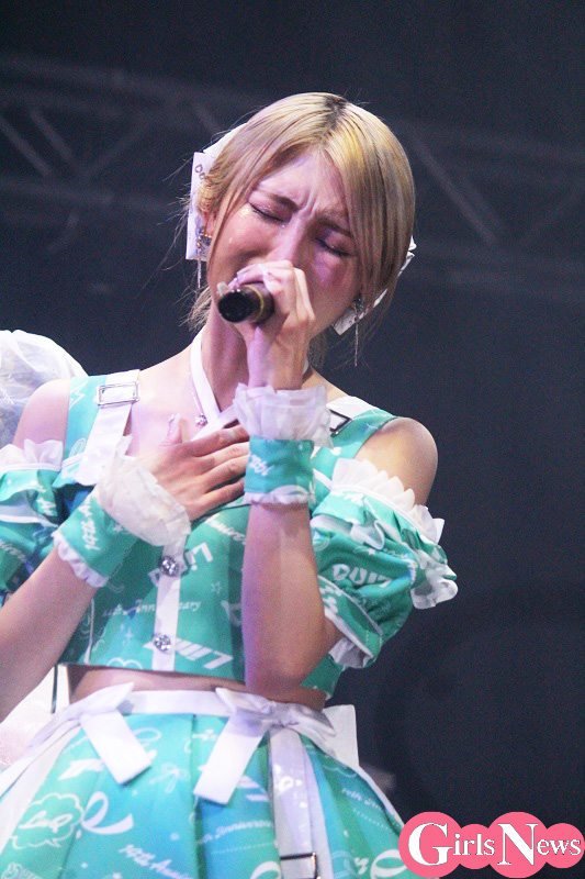 後輩メンバーたちは今日のライブでは“MCで悠未さんに一回は話しかけよう”と決めていたようで、昨年末に姉妹グループの結音YUIONからLinQへ加入した橘杏來さんは、「今日嬉しかったのは悠未さんと髪型が一緒(笑)」とおどけた調子で語ると、髙木さんは「杏來と刻んだ時間は半年ちょっとだったけど、急に所属グループが変わって、歴史の長いLinQに入る、そして先輩っていう人ができるというのは杏來の中で大変だったと思います」「杏來は寂しい思いもしたと思う。みんなに頼っていいんだよ」と優しく語りかけると、橘さんの目からは大粒の涙が溢れ出す。「杏來が結音YUIONで作った仲間と同じように、みんなにもっとさらけ出していいんだよ。だから、頑張ってね。本当は杏來は内に秘めた想いがいっぱいあるのを知ってるから……」。その言葉に号泣する橘さんだった。最後に髙木さんは「みんなで最高のLinQを作ってほしいです」とメッセージを残して、ライブの本編は終了となった。