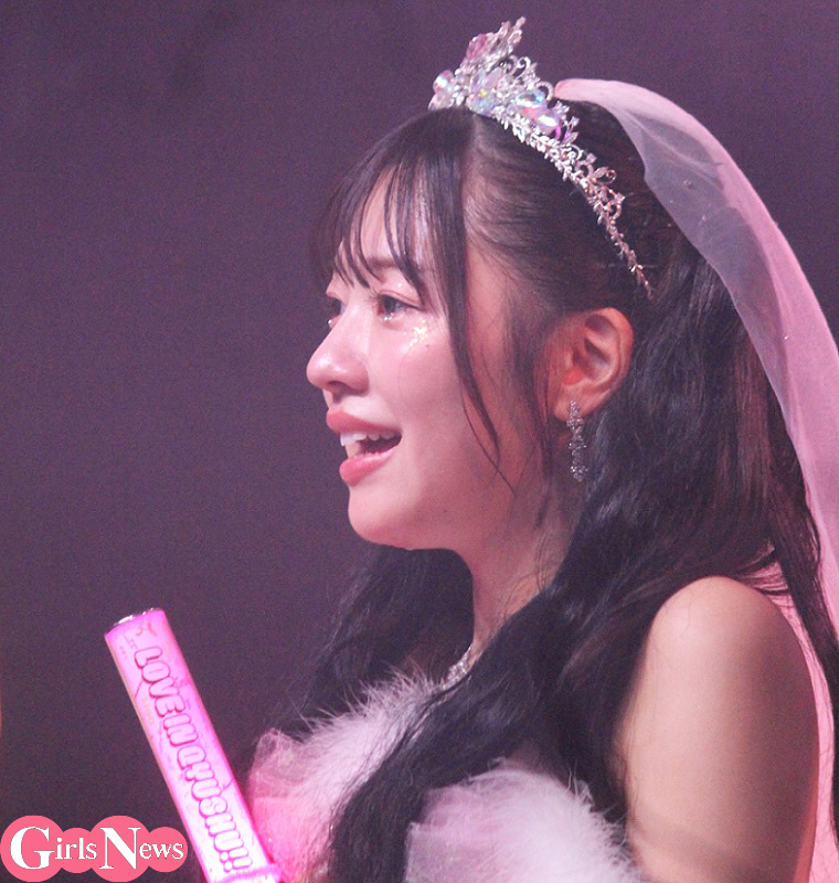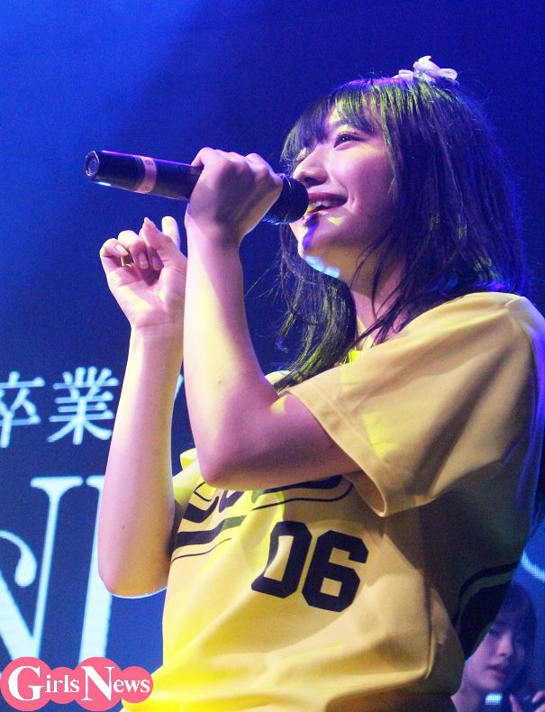 そして「本当に終わっちゃうんですね、14年。私の中で13歳の頃から記憶にある時間のすべてはLinQだったので……」「次のSTEPに進んでいくと自分で決心したけど、やっぱり寂しいね。でも私が守ってきたLinQだけど、先輩の思いじゃなくて、みんなが作るLinQで進んでいってほしいです。私も、歴代メンバーのライブ(7月のツアー“歴代LinQメンバー大集合!”公演)のあとに、『最高の仲間に出会えたな』と思えたように、みんなも最高の仲間を作っていってね。そして10年後、またみんなが作る歴代メンバー公演に、『衣装がパツパツで入らんよ』と言うような10年後の私だと思うんですけど……」と将来の共演を楽しみにしつつ、「そのときはみんなも年とっとるけんね。みんなでヨボヨボになりながら(笑)、あの頃の青春楽しかったなって思えるような(ライブをできたら……)。出会ってくれてありがとうございました」と最後のメッセージを送った。