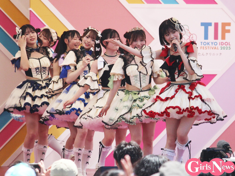 アイドルグループ・SUPER⭐︎GiRLSが2日、お台場・青海周辺エリアで開催されたアイドルフェス「TOKYO IDOL FESTIVAL 2025 supported by にしたんクリニック」(以下TIF)に登場。前日のDOLL FACTORYでのライブに続いて、この日はまず屋外のSMILE GARDENでライブを行った。