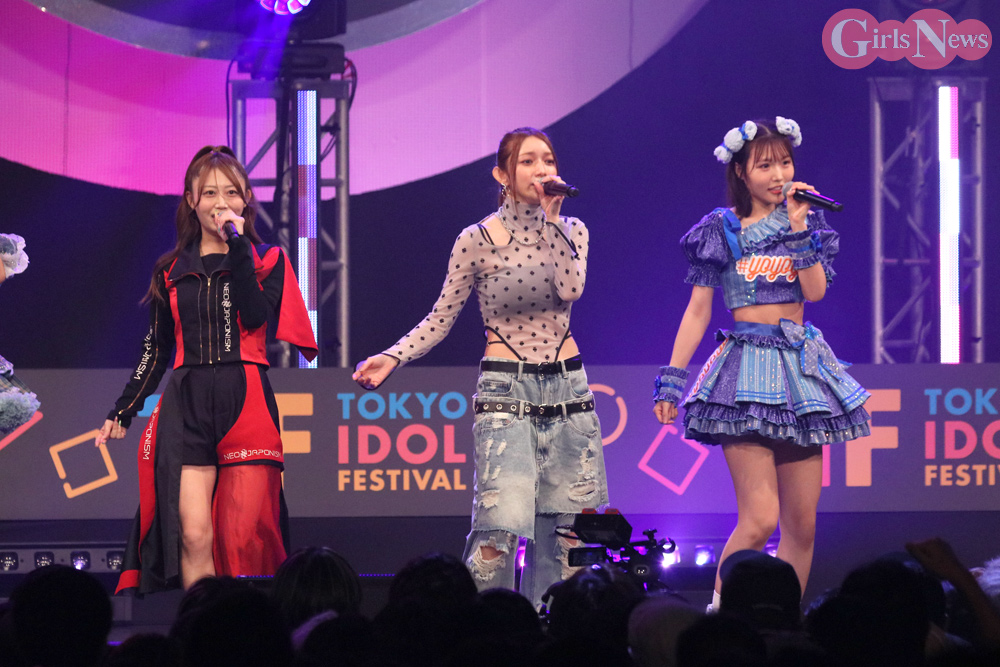 ステージは、後藤さんとアイドル全員による『そうだ!We’re ALIVE』で幕を開けた。後藤さんが同曲をパフォーマンスするのは約20年ぶりだといい、「みんなでわちゃわちゃやるのがすごい楽しかった」と笑顔を見せた。初のTIF出演について「すごい熱気がヤバいですね」と会場の盛り上がりに驚きつつ、「推しのタイムスケジュールに合わせて、ファンのみなさんが入れ替わるのが新鮮ですね」と感想を語った。