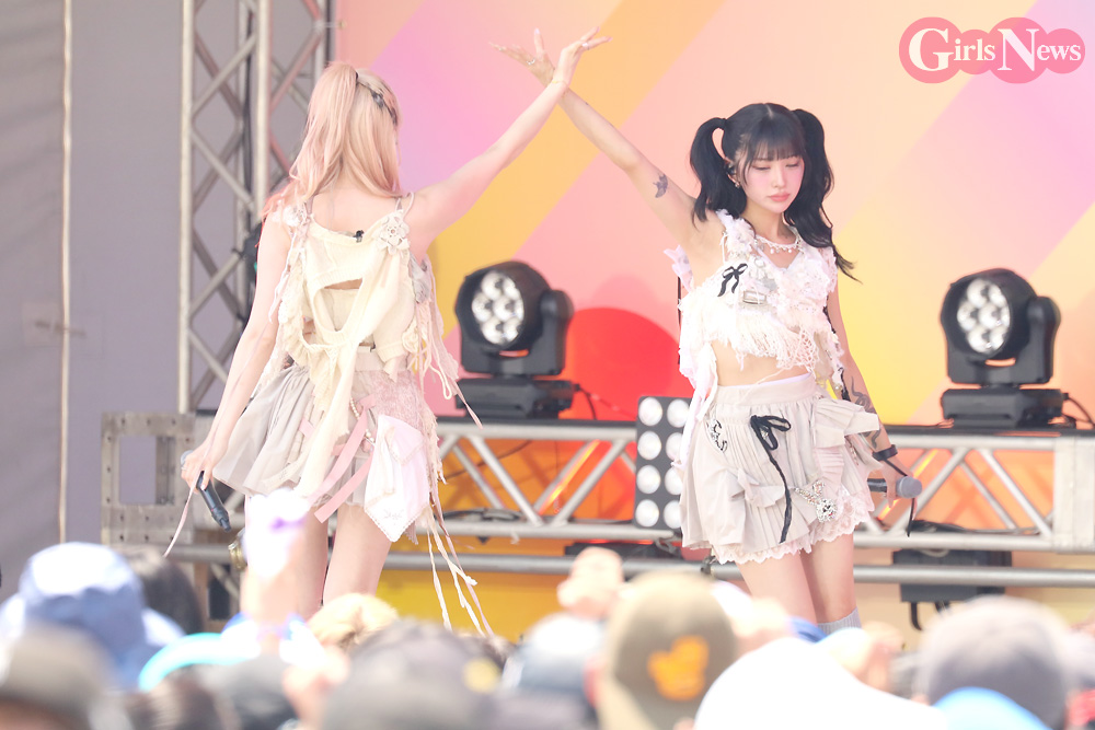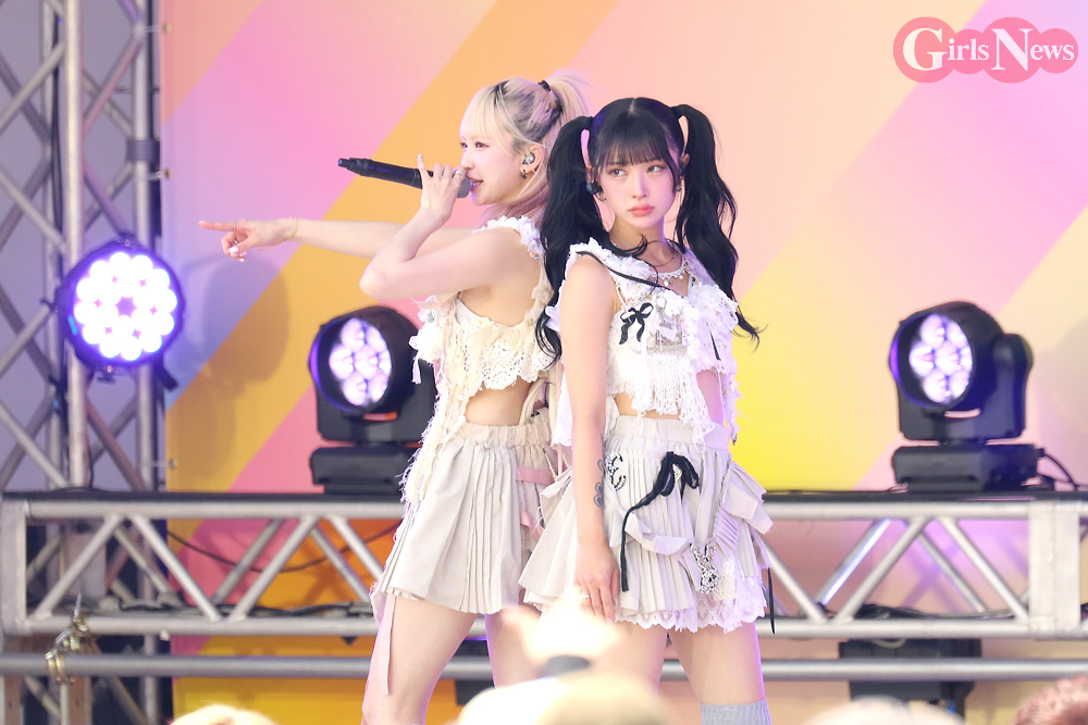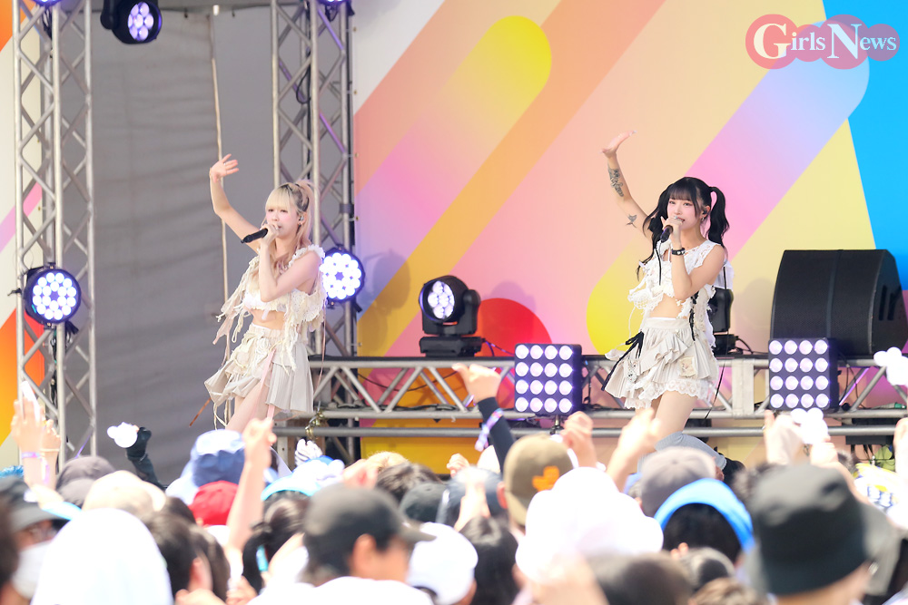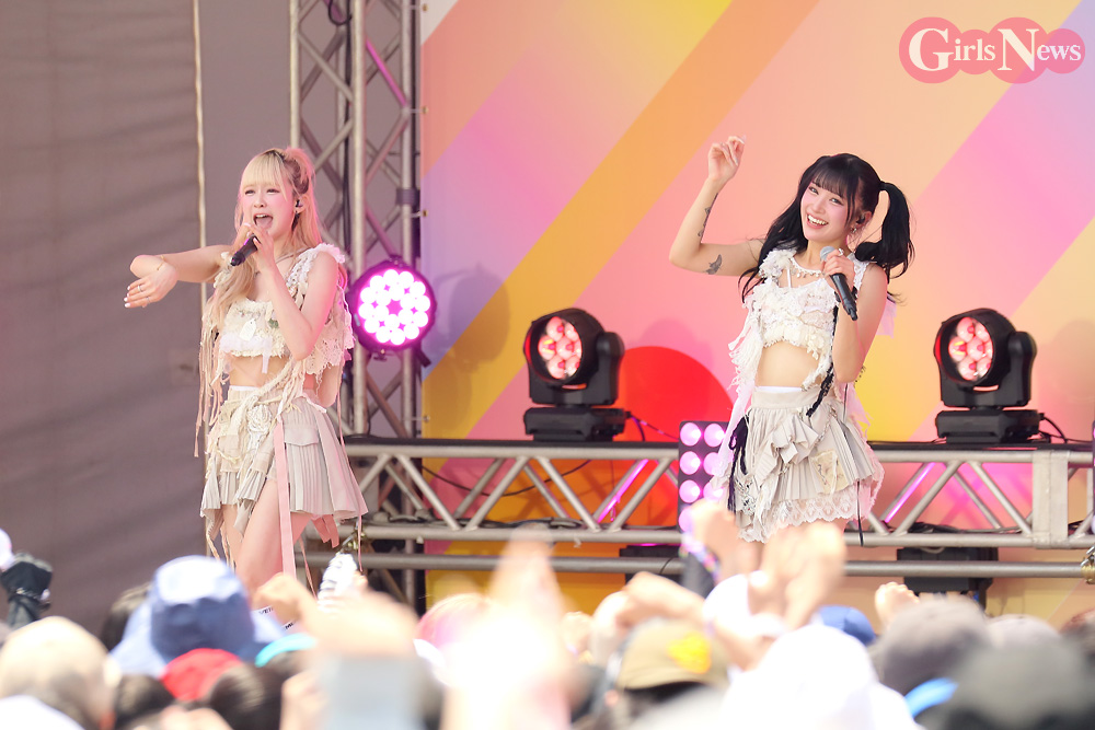 REI(黒宮れい)、RIE(金子理江)による2人組ガールズユニット・REIRIEが3日、お台場・青海周辺エリアで開催されたアイドルフェス「TOKYO IDOL FESTIVAL 2025 supported by にしたんクリニック」(以下TIF)に登場。炎天下の野外ステージ「UP-T HOT STAGE」で圧巻のパフォーマンスを繰り広げた。