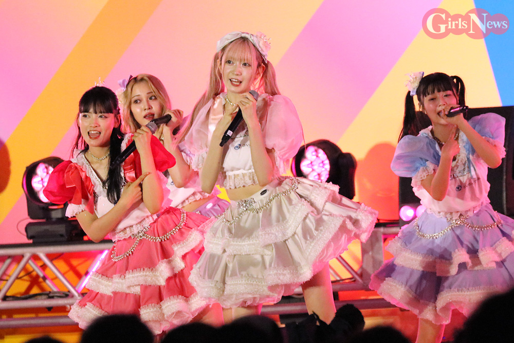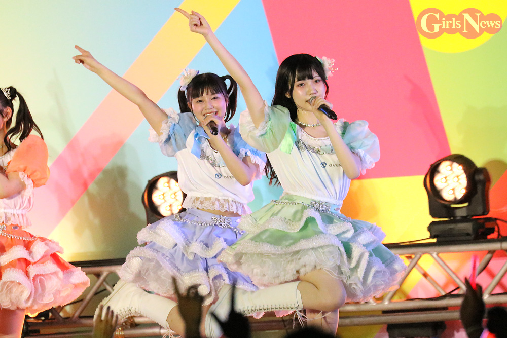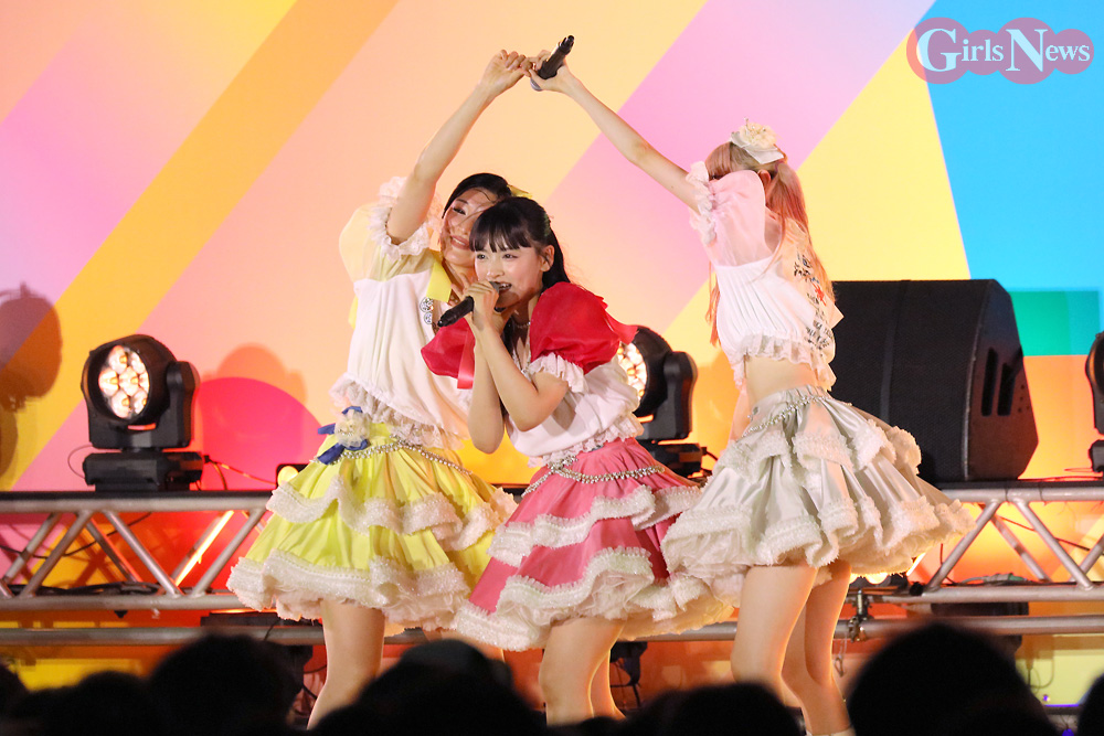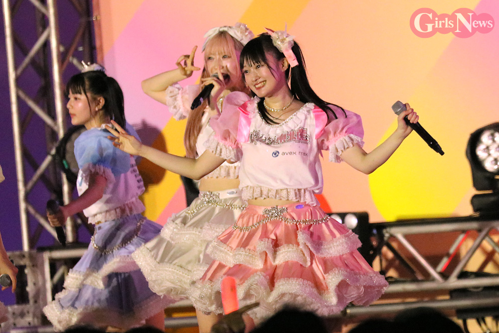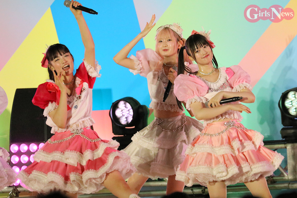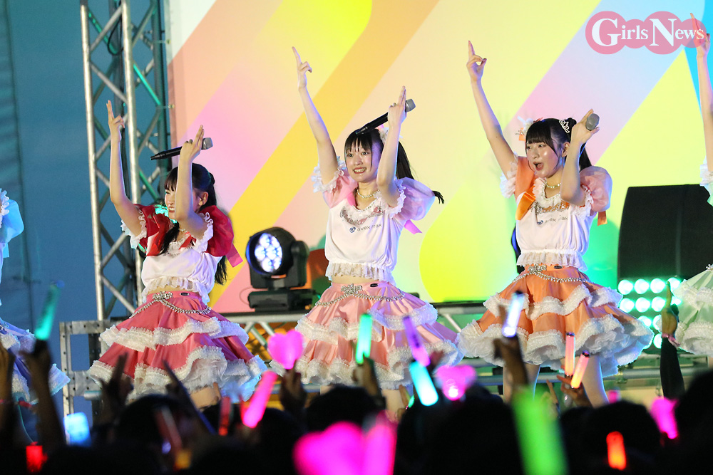 ライブ後半は『Trophy Girl』『わざとあざとエキスパート』を披露。「今年のTIFのHOTステージ、一番ホットにするのは、私たちだ! 喰らえ!全開ビーム!」と叫び、キラーチューン『天下一品〜みちのく革命〜』を投下。