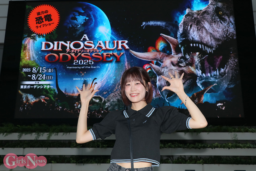 アイドルグループ「LIT MOON」のメンバー・寒河江咲菜さんが14日、東京・有明ガーデンで15日より開催の恐竜ライブショー『DINO-A-LIVE「ア・ダイナソーオデッセイ2025」』を一足早く鑑賞した。