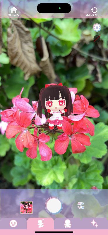 カメラを起動すると、「きゅるりんってしてみて」のメンバーをモチーフにしたぬいぐるみが表示される。そのため、いつでもどこでもぬいぐるみとともに”ぬい撮り”をして推し活ができる。ぬいぐるみたちは、ただカメラに目線を向けるだけではなく、様々なポーズをとったり、いろんな表情をする。