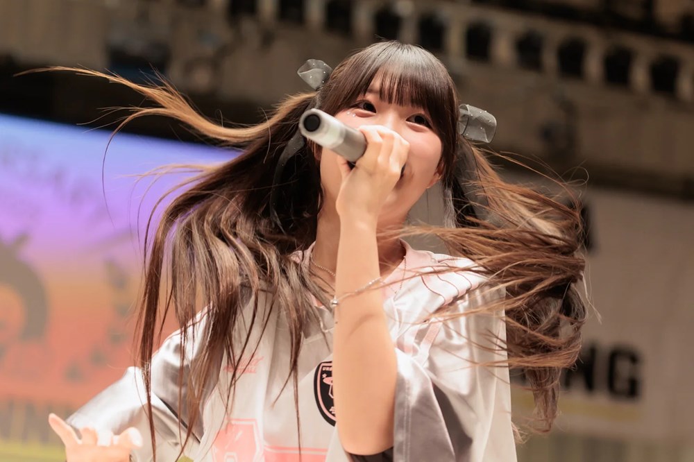 この日が初の観客前でのパフォーマンスとなり、二人はプロレスのリングに登場。デビュー曲の『うる星やつらのテーマ ~ラムのラブソング~』と、同日配信を開始した新カバー曲『キン肉マン Go Fight!』の2曲を歌い上げた。『キン肉マン Go Fight!』では、マッスルポーズや正拳突きといった振り付けで会場を沸かせた。