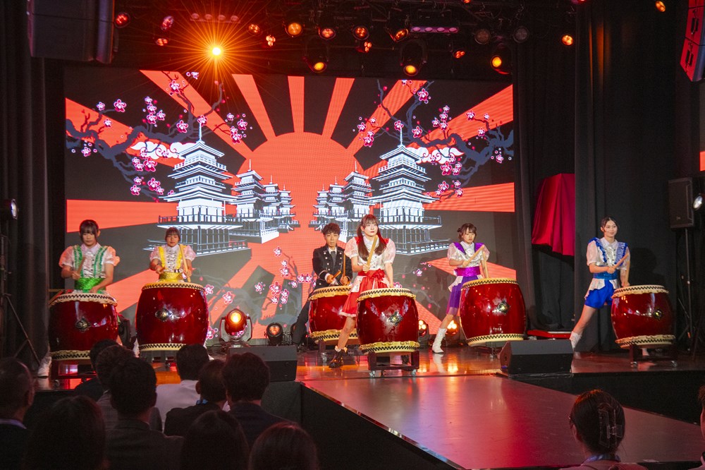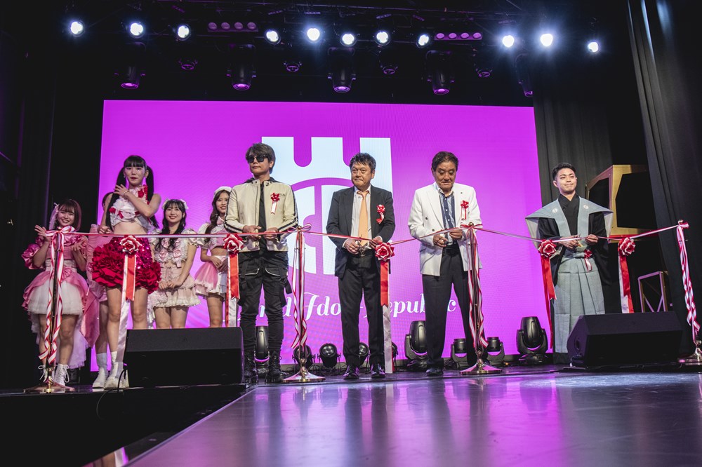 同施設は、「アイドル文化×国際交流×インバウンド×推し活」を核とした次世代型のエンタメ施設で、名古屋・栄の新たな観光拠点として日本のポップカルチャーを世界へ発信する役割を担う。式典は「WORLD DREAM STUDIO」で行われ、開国を告げるファンファーレで華やかに開幕した。夢の共和国の門出を祝う音楽が会場に響き渡ったあと、今後DREAMING STUDIOで公演予定の能狂言や和太鼓、イリュージョンショーなどのパフォーマンスの一部が披露された。