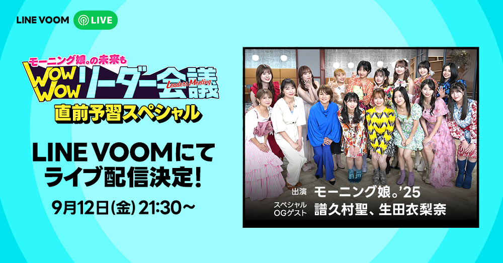 スペシャル番組『モーニング娘。の未来もWow Wow リーダー会議 直前予習スペシャル』が、「LINE」内のショート動画プラットフォーム「LINE VOOM」にて、9月12日(金)21:30よりライブ配信されることが発表された。