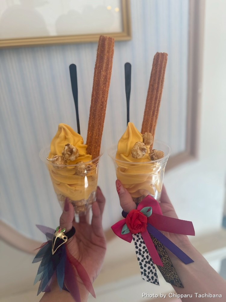 続いてお隣の「アイスクリームコーン」のカウンターで「ハロウィーンサンデー(パンプキンソフトクリーム&チュロス)」を注文した七瀬さんは、一口食べると「初めて食べたけど、めちゃくちゃ美味しい。勝手に激甘を想像していたら、そこまで甘すぎなくて食べやすい。ハロウィーンカラーの黄色い見た目も最高!」と喜びを伝えた。
