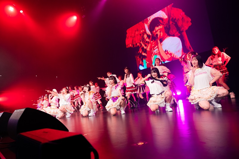 この日はサプライズとして、初代キャプテンで現在はラジオパーソナリティとして活躍する清里千聖や、グラビア界で高い人気を誇る森咲智美をはじめ、総勢28名のOGが集結。現役メンバーとの世代を超えた共演では、歴代の代表曲が次々と披露され、当時を知るファンと新しい世代のファンが一体となる貴重な空間が生まれ、客席からは割れんばかりの拍手がわき起こった。