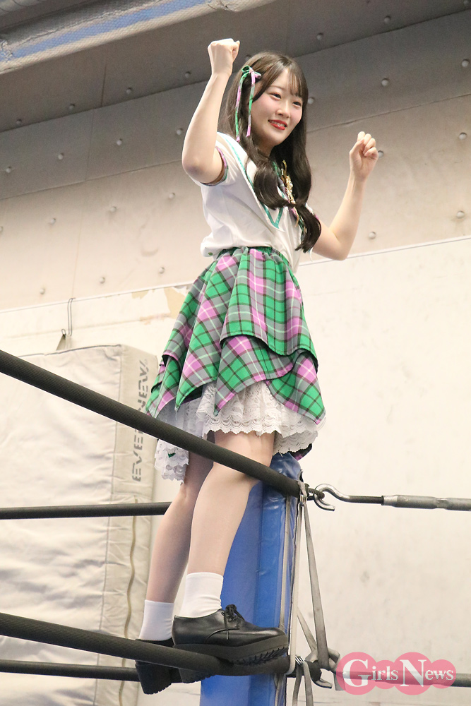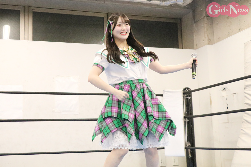 山根さんは、アップアップガールズ(プロレス)のメンバーによるパフォーマンスを見て、「大迫力で、すごかったです。普段からプロレスをされているので、足上げのフリとかも全員一緒の高さで揃っているし、途中でコーナーに上がっていたのが、普通のアイドルにはできないので、特別さを感じました。すごく格好よかったです」と興奮した様子で語った。初めてリングに立ったことについては、「普通の人生では経験できなかったことで、貴重な場所に立てたのが嬉しかった」と述べた。