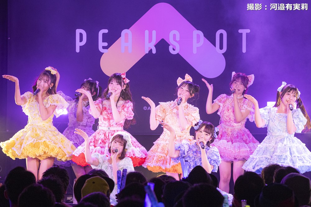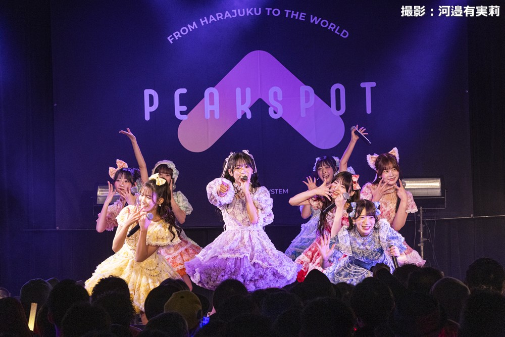 PEAK SPOTは、アソビシステムが手がける新アイドルプロジェクト。これまでに芸能活動を経験したメンバーが集い、アイドルというステージで“PEAK (頂上)”を目指す。この日は、今年2月に誕生した1stグループ・fav me、4月に別のプロジェクトから加入したToi Toi Toi、そして、この日デビューを迎えたlog youが出演した。