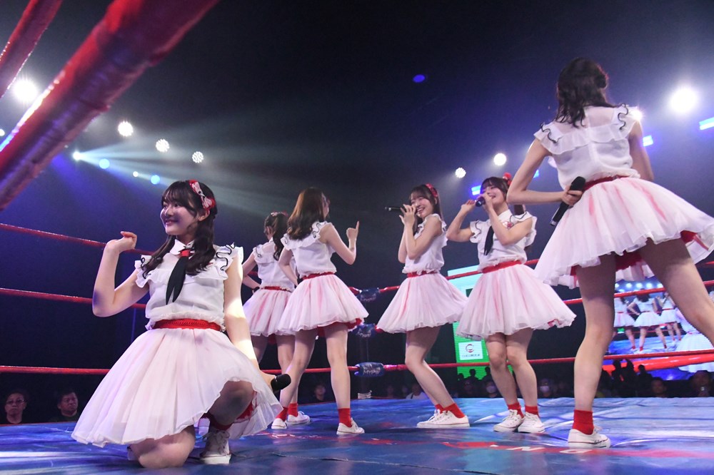 LOVEマシーン(矢口真里、アップアップガールズ(プロレス)、SKE48兼東京女子プロレス荒井優希、KLP48、NGT48北村優羽)