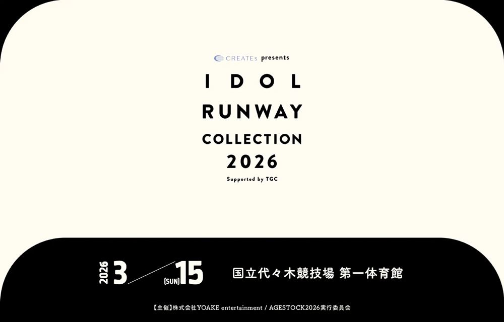 アイドルとファッションの祭典『CREATEs presents IDOL RUNWAY COLLECTION 2026 Supported by TGC』が2026年3月15日、国立代々木競技場 第一体育館で開催される。乃木坂46、FRUITS ZIPPER、CANDY TUNE、CUTIE STREET、高嶺のなでしこら豪華アイドルグループが出演するほか、新たな推し活サービス『IRC APP』も公開され、11月28日よりチケットの公式アプリ会員先行受付が始まった。