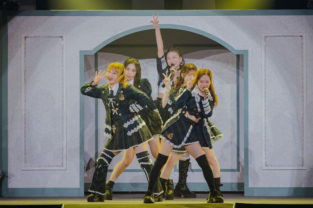 その後の 『セクシーキャットの演説』では羽賀と横山と小田さくらがネコの役を務め、かわいくも妖艶なダンスを魅せたかと思えば、『HEAVY GATE』『What is LOVE?』などといったライブ映えするアップチューンなナンバーを次々と披露。会場を盛り上げていく。