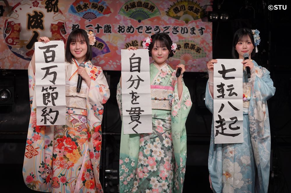STU48 二十歳メンバー6人、晴れ着姿で大人の誓い 爆笑クイズで会場わかす
