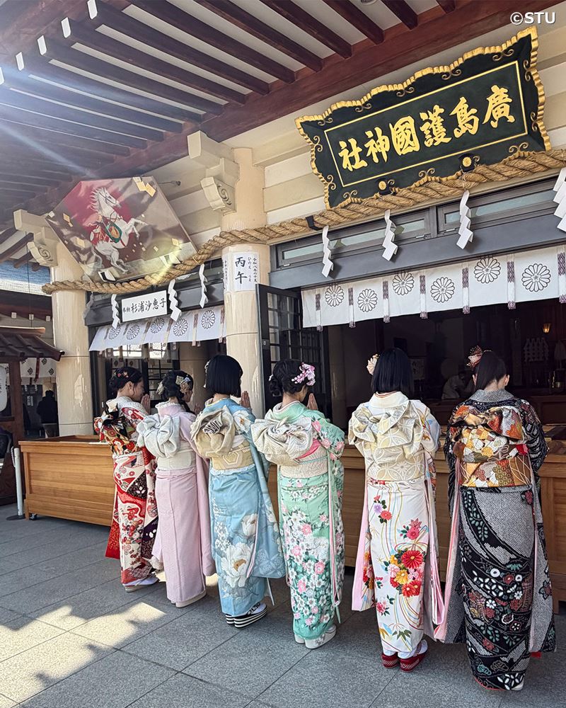 瀬戸内を拠点に活動するアイドルグループ・STU48の20歳のメンバー6人が12日、広島護国神社で成人奉告祭を執り行い、その後STU48広島劇場でファンとの交流イベント「2026年 STU48 二十歳の集いイベント」に参加した。